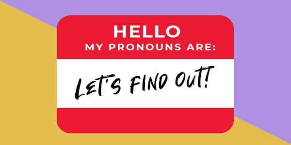 People simply announce “their” pronouns on their name tags.