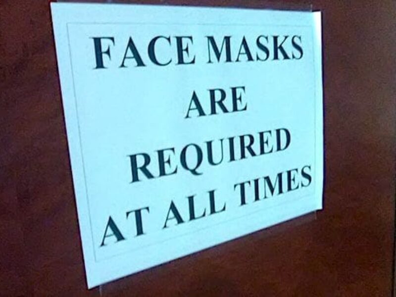 A sign of the times at many businesses during the COVID-19 pandemic in 2020 and 2021. (Photo by Joe Kovacs) Two of America’s prominent legal
