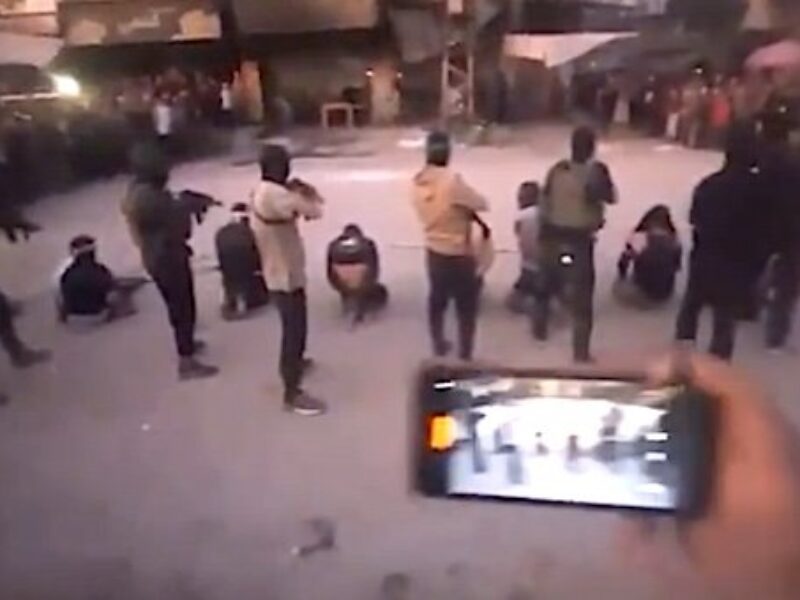 Members of the Islamic terror group Hamas publicly execute their enemies on Monday, Oct. 13, 2025 As President Donald Trump was signing the Mideast peace