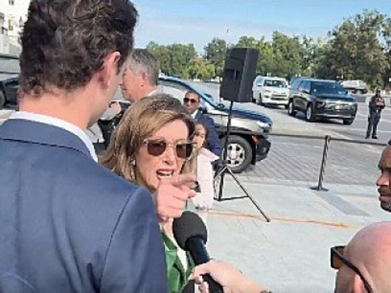 Congresswoman Nancy Pelosi snaps at Lindell TV reporter Alison Steinberg on Wednesday, Oct. 15, 2025, when asked about her role in the Capitol mayhem of