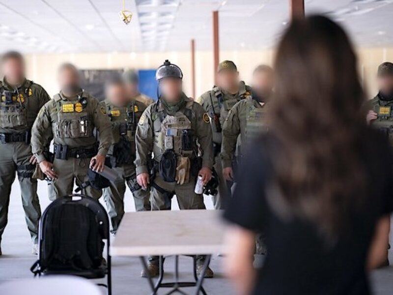 Secretary of Homeland Security Kristi Noem visits with officers from U.S. Immigration and Customs Enforcement, U.S. Customs and Border Protection, and the Federal Protective Service