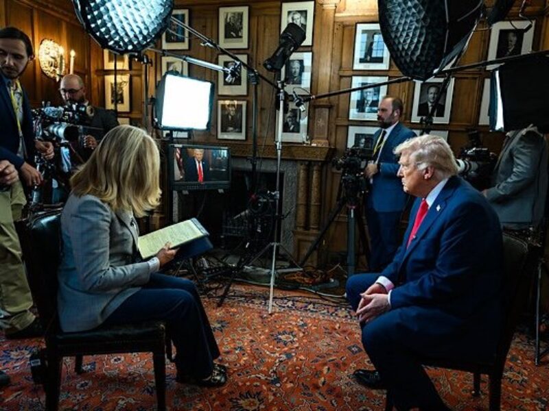 President Donald Trump participates in an interview with Martha MacCallum of Fox News at Chequers, the prime minister’s house in Buckinghamshire, England, on Thursday, Sept.