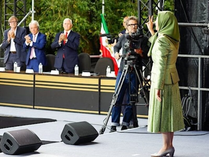 Iranian Resistance leader Maryam Rajavi speaking at major freedom rally held Saturday, Sept. 6 in Brussels, with former U.S. Vice President Mike Pence in support.