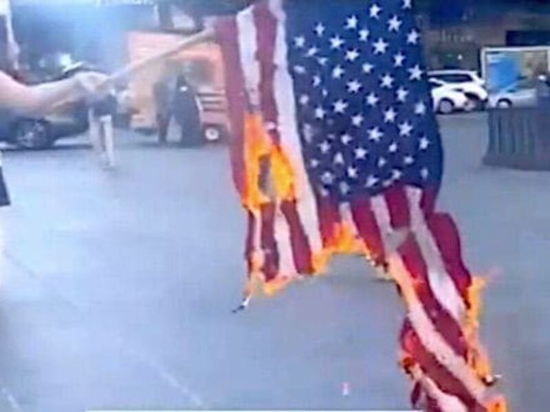 An American flag is burned during an anti-American and anti-Israel protest in New York City on Monday, April 15, 2024. The federal government now has