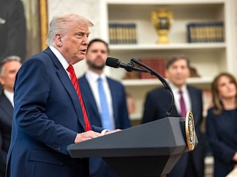 President Donald Trump participates in the swearing-in ceremony for Senior Adviser and Special Envoy Steve Witkoff, Tuesday, May 6, 2025, in the Oval Office. Vice