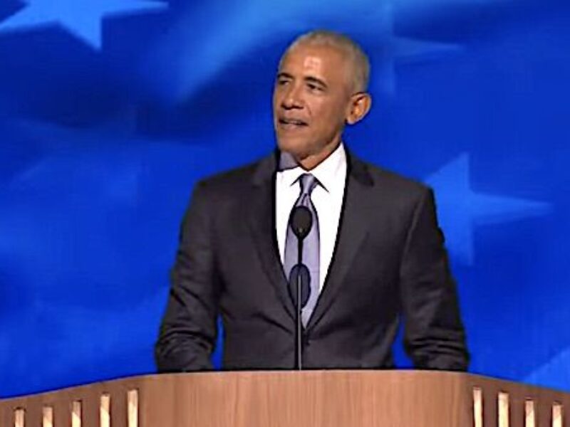 Barack Obama speaks on Night 2 of the Democratic National Convention in Chicago on Tuesday, Aug. 20, 2024. With all the evidence, from documents from