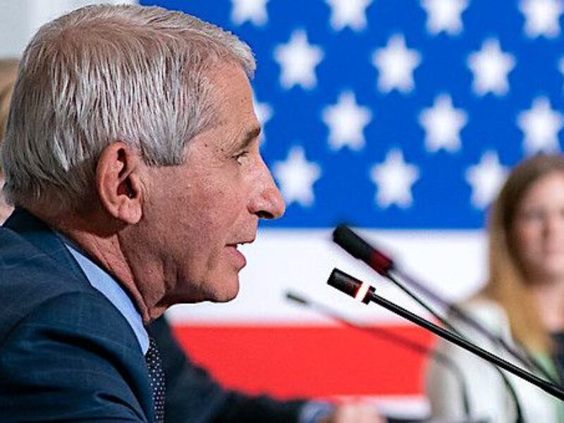 President Donald J. Trump listens as Dr. Anthony Fauci, Director of National Institute of Allergy and Infectious Diseases, addresses his remarks at a roundtable on