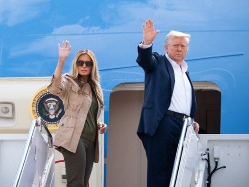 President Donald Trump, accompanied by First Lady Melania Trump, visited Texas Friday to survey the results of last weekend’s flash floods that left more than