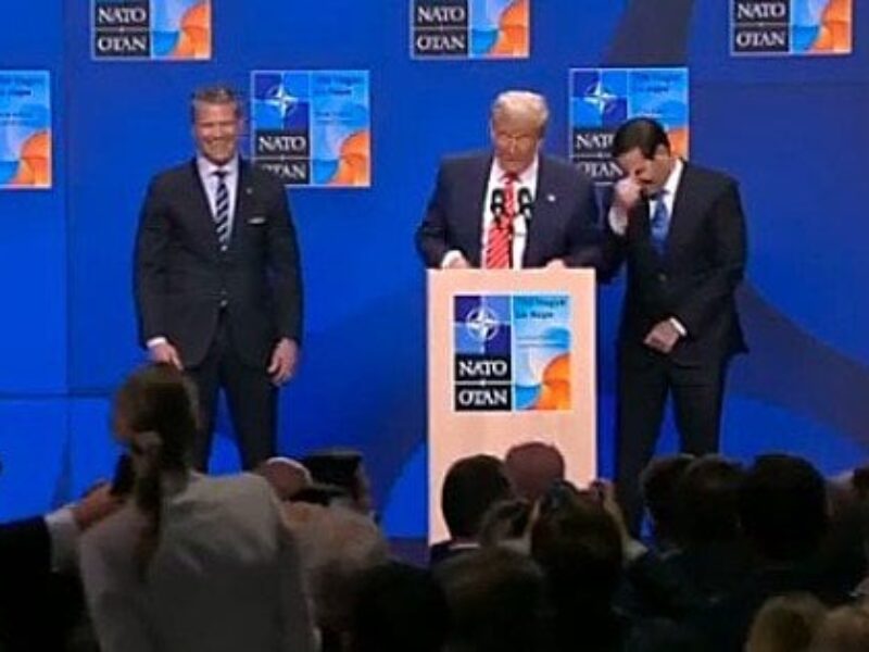 Defense Secretary Pete Hegseth, left, and Secretary of State Marco Rubio react to President Trump’s remark. If George Washington was the father of our country,