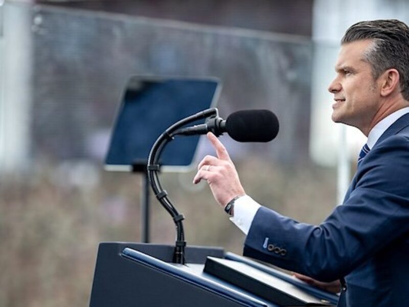 Secretary of Defense Pete Hegseth delivers remarks at Fort Bragg, North Carolina on Tuesday, June 10, 2025, during a visit to commemorate the 250th anniversary