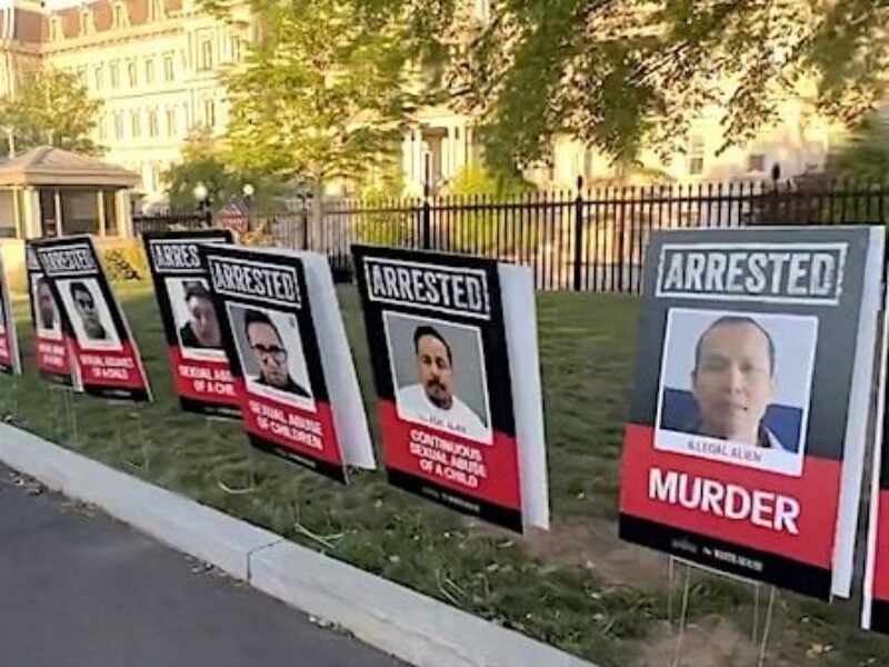 Mugshots of the worst criminal illegal aliens arrested line the White House lawn on Monday, April 28, 2025 Just as President Donald Trump is cracking