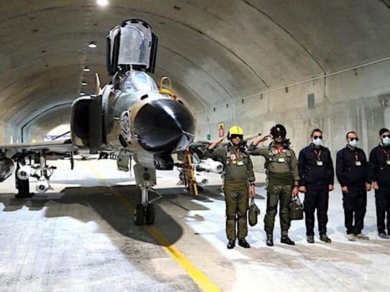 Pilots pose with an aircraft at a new underground Iranian air force base in this picture released Tuesday, Feb. 7, 2023. (Iranian Army) In his