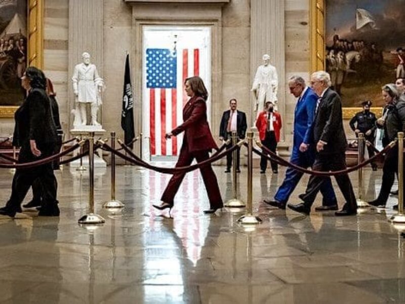 Vice President Kamala Harris participates in the Senate procession to the House Chamber for President Joe Biden’s State of the Union Address, Tuesday, Feb. 7,
