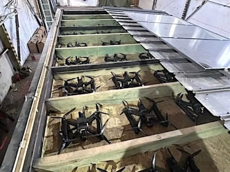 A picture purporting to show the drones used in the attack placed in the roofs of ‘mobile wooden houses’ which were then being transported by
