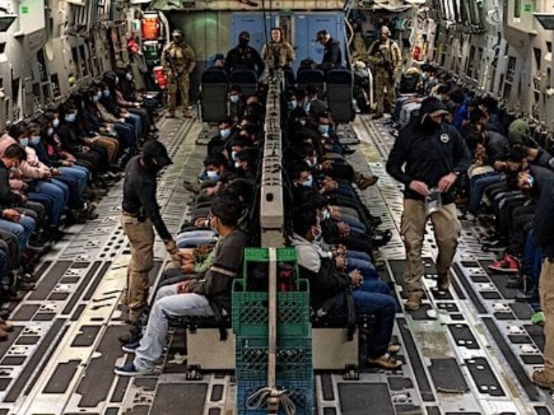 Illegal aliens await takeoff for a removal flight at the Tucson International Airport, Arizona, Thursday, Jan. 23, 2025. (Dept. of Defense photo by Senior Airman