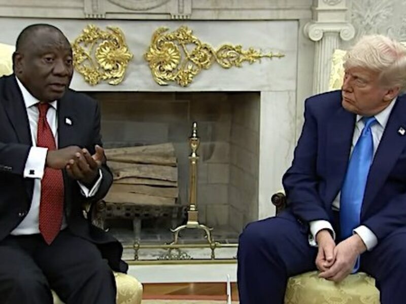 President Donald Trump talks with South African President Cyril Ramaphosa in the Oval Office on Wednesday, May 21, 2025 White House Press Secretary Karoline Leavitt