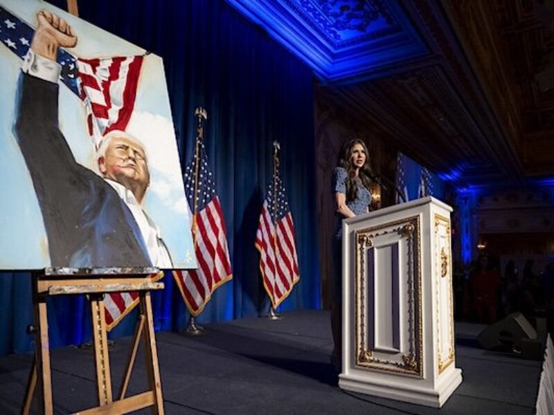 U.S. Department of Homeland Security Secretary Kristi Noem speaks at the American Patriots Gala at Mar-a-Lago Club in Palm Beach, Florida, Thursday, April 3, 2025.