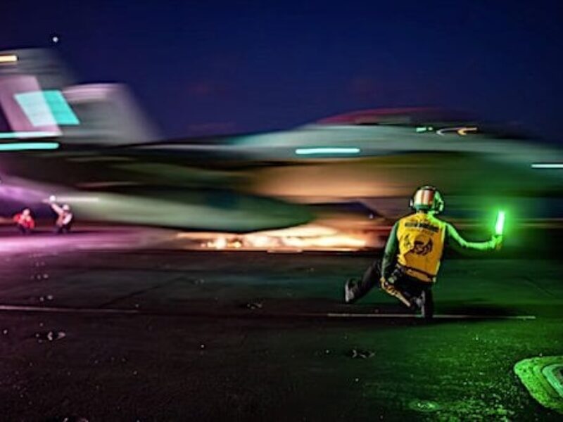 A Navy F/A-18E Super Hornet launches from the USS Carl Vinson in the U.S. Central Command area of responsibility, Saturday, April 12, 2025. (U.S. Navy