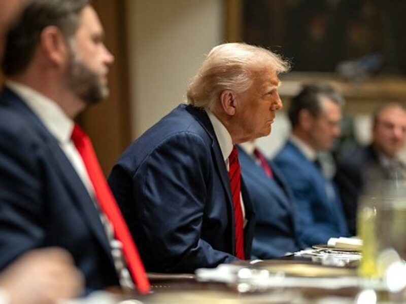 President Donald Trump hosts a bilateral lunch with Prime Minister Giorgia Meloni of Italy, Thursday, April 17, 2025, in the Cabinet Room. (Official White House