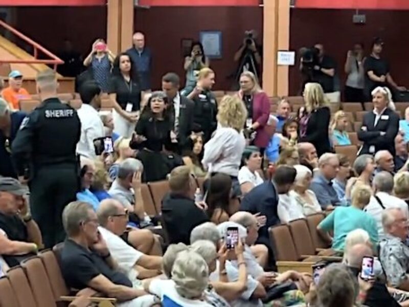 A screaming pro-Palestinian protester apparently was trying to take over a town meeting assembled by U.S. Rep. Byron Donalds, a Florida Republican running for governor