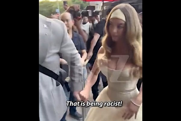 At her latest movie premiere Sunday night in Hollywood, a heckler targeted the actress, yelling: “Stop the ad! That is being racist.”